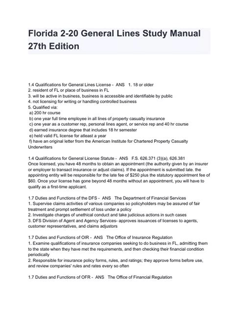 Free PDF FLORIDA GENERAL LINES STUDY MANUAL Paperback